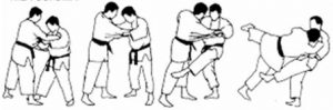 En la práctica o el combate, lo primero que se busca es el control del Kumi kata, donde se pretende obtener un agarre acorde a la mano dominante, por cuanto acorde a dicho agarre, se establece la dirección de los movimientos y las proyecciones. La otra mano realiza el control de la solapa (Tsurite) y como apoyo en el control de la intención del movimiento del oponente, y además, el desequilibrio y la proyección de las acciones a realizar.